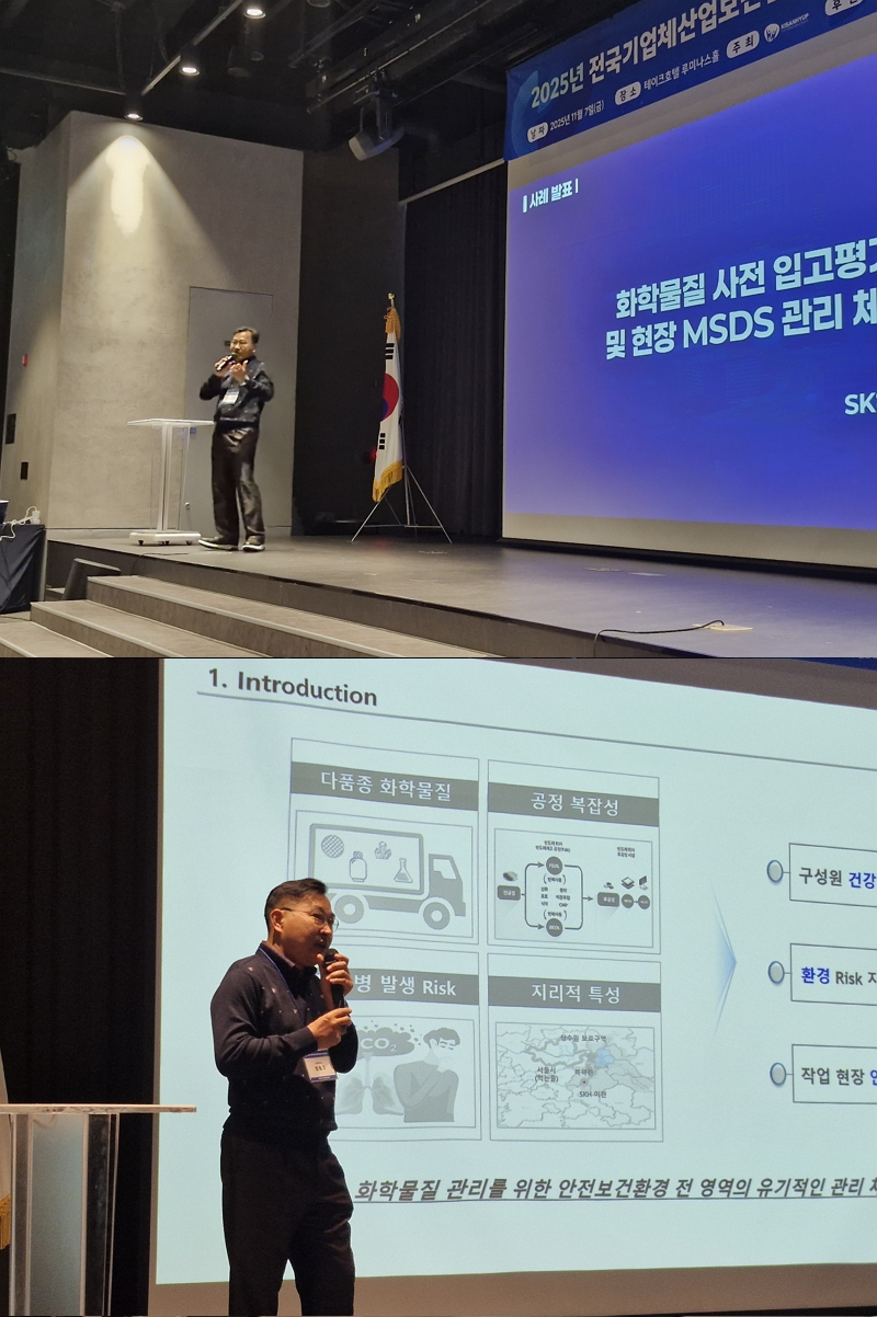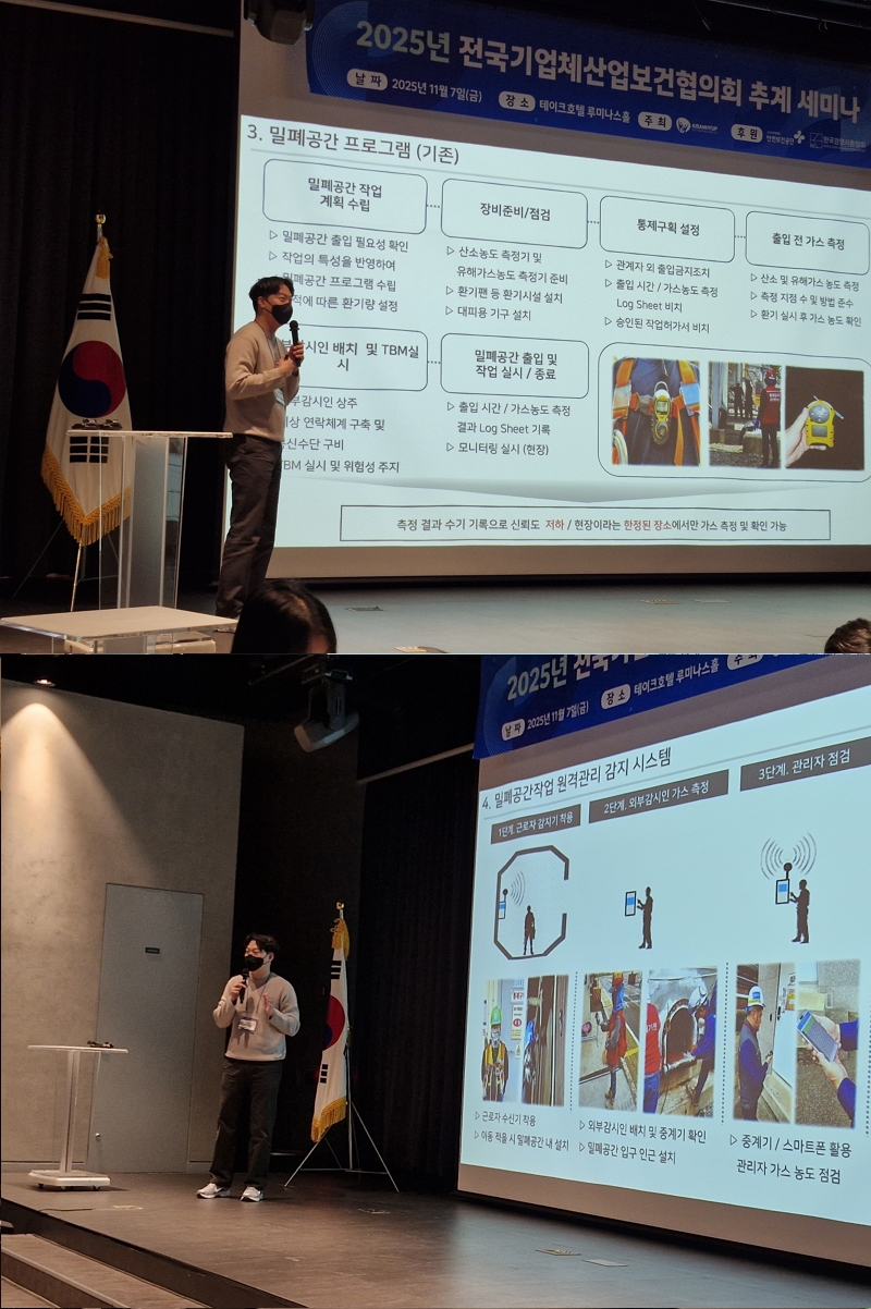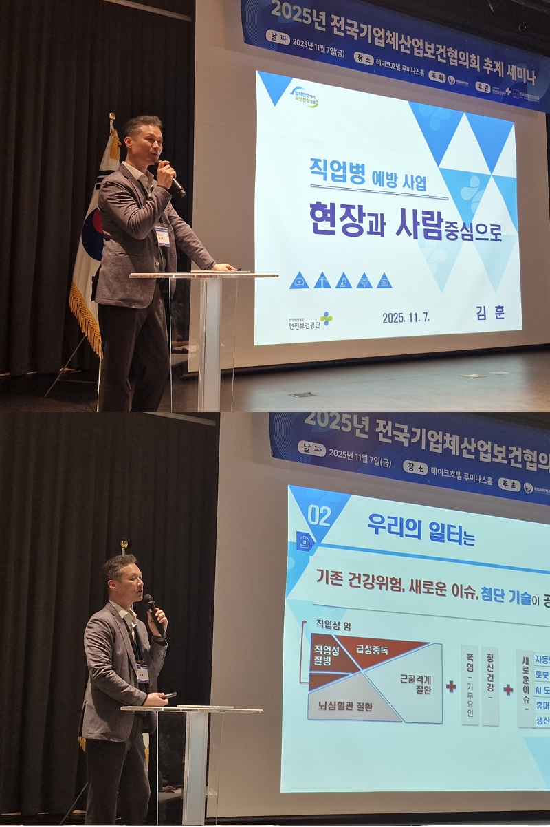 '25년 추계 세미나 개최_11.07 관리자 0 162 11.12 15:20 [`25년 추계 세미나][고용노동부 윤현욱 서기관_실무자 관점 산업보건정책] [안전보건공단 김훈 부장_직업병 예방사업 현장과 사람 중심으로] [한국경영자총협회 임우택 본부장_업무상 질병 판정 절차 개정 동향과 기업의 대응] [삼성웰스토리_개인화 시대 맞춤 비만 케어] [SK하이닉스_화학물질 사전 입고평가 및 현장 MSDS관리 체계] [SK가스_밀폐공간작업 원격 감지 시스템] [LG에너지솔루션 전지실험 공정의 유해화학물질 관리방안] [안전보건용품 전시]